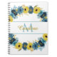 Blue Gold Autumn Floral Wreath Monogram Notebook