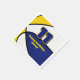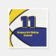 This basketball themed party napkin for a basketball birthday or team party features the image of a basketball that has alternating blue, white and gold panels - customise the text in blue and gold - by katz_d_zynes