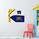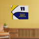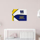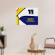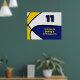 This basketball themed birthday party welcome poster is fully customisable and features the abstractly oversized image of a basketball that has alternating blue, white and gold panels - customise the party details in blue and gold - by katz_d_zynes