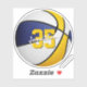 This custom basketball sticker features the realistic image of a basketball that has alternating blue, white and gold recolored panels upon which you can personalise the athlete's name and jersey number - by katz_d_zynes
