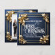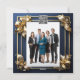 A beautiful and luxurious square double frame has gold bows in each corner and the words "Merry Christmas" in the middle in a fancy lettering script. The frame is a faux gold and the templates are white. The back has the same graphic on which templates for your company staff photo and qr code or logo appear. This traditional, classic and timeless design is ideal for any professional, business or corporate looking for an upmarket and sophisticated design to send to customers, clients, friends and family to thank them for their support over the year. These are ideal for the festive holiday period and convey the spirit of the season. Merry Christmas and Happy New Year!