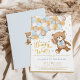 This adorable teddy bear themed invitation is sure to put a smile on your guests' faces! The soft blue, brown, beige & gold colour scheme makes this design perfect for a boy baby shower. Personalise the invite with your details and if you want to further re-arrange the style and placement of the text, please press the "Click to customise further" button.