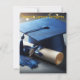 Graduation Invitation, with digital artwork, front and back, of a blue graduation cap and diploma. Back of invitation includes graduate name. Message MineByDesign for help with this design or custom requests!