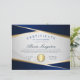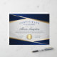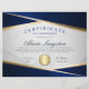 Blue and gold gradient professional certificate of achievement award includes gold and blue medal.
