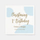 These elegant napkins feature a beautiful blue polka dot and gold hue text design, perfect for celebrating a christening and first birthday in style. Personalise them with the child's name and event date to add a special touch to your celebration. Ideal for a memorable and stylish party. Modern typography, chic and elegant.