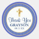 Sold navy blue frames the outer sticker, while blue stripes frame the inner sticker. They are separated by gold edging. The interior of the sticker is white and contains a small gold cross. Thank you, the boy's name and date are just below the boy's name. Perfect sticker for many religious events and ceremonies such as a christening, baptism, dedication, first communion or confirmation. Appropriate for boys and men of all ages. Use it to seal party favours and envelopes. Easy to customise.