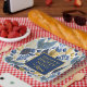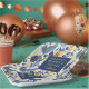 If you are wondering what colour combinations to pick for your Christmas decor and gift wrap supplies this year, I've created collections of coordinating patterns to make life just a bit easier. This Christmas paper plate features eye-catching watercolor foliage arrangements with berries and Christmas ornaments in deep blue and gold with a template to add your name. Search ID1009 to see other products and patterns in this colour scheme.