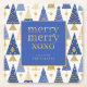 If you are wondering what colour combinations to pick for your Christmas decor and gift wrap supplies this year, I've created collections of coordinating patterns to make life just a bit easier. This Christmas coaster features  a modern graphic design of tiny Christmas trees in a geometric-style pattern of deep blue and gold with a template to add your name under provided 'merry merry xoxo' text. Search ID1009 to see other products and patterns in this colour scheme.