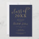 This simple, elegant navy blue and gold heart script graduation party invitation can be personalised with your grad's details and special photo on the reverse. Designed by Thisisnotme©