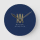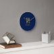 Blue Gold Colours Monogram Initial Letters Name Round Clock