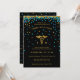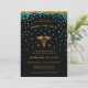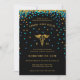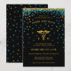 Nursing School Graduation Invitation with blue and gold glitter confetti and a gold caduceus symbol. Personalise the text for your own RN's graduation ceremony! Note: The gold glitter is a printed effect, no actual glitter will be used in making these invitations.