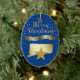 Give them something pretty from the beautiful state of Connecticut! On the front of this ornament is a shiny gold silhouette image of the state, with a darker gold star imposed over it. Above the state and star image is the glittery message MERRY CHRISTMAS in script, and a banner with the text in blue CONNECTICUT. Around it all are gold snowflakes. The images and text are placed on a deep blue background. The back of the ornament has text fields in light gold for you to customise, and a second gold star image. You may change the background colour, if you'd like, by choosing CUSTOMIZE.