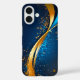 Phone case featuring an abstract stylish glitter design in navy blue and gold colours. Beautiful contemporary art for daily use and a festive gift.