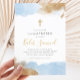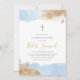 A modern blue watercolor and faux gold glitter baptism invitation. The perfect design for your little boys christening or baptism.