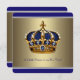 Blue Gold Crown Little Prince Boy Baby Shower Invitation