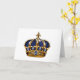 Blue and gold royal crown greeting card can be customised as needed. Move, delete and re-size the crown on the front, inside and back. Change the background colour and add text.