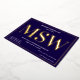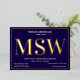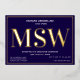 An MSW graduation party invitation with gold foil, white text, and a blue background. Simply add your information, add this invitation to your cart, and celebrate this major accomplishment.
