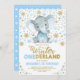 Blue Gold Elephant Winter ONEderland Snowflake Invitation