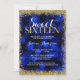 Blue Gold Faux Glitter Lights Sweet 16 Birthday Invitation