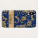 This stylish royal blue and gold Case-Mate Barely There iPhone X Case has a gold simulated glitter floral damask pattern that is sure to be a standout! The case has a wide gold band across the bottom that is personalised with a name or other text.