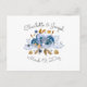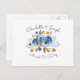 Blue Gold Floral Wedding Invitation Postcard