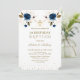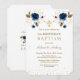 Blue Gold Flowers Boys Twins 1st Birthday Baptism Invitation