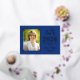 This fully customizable Class of 2026 graduation announcement invitation has real gold foil elements on the front side. The background color is royal blue, and there is a photo template on the left side that has an ornate gold foil scrolled frame around it. The back side is also royal blue with a SIMULATED gold scroll border surrounding the customizable wording that allows room to include the party details and RSVP information. Email niteowlstudio@gmail.com if you want a different color on the front. You can change the color of the background on the back side to whatever color you want using the "edit using design tool" mode and changing the background color. The scrolled frame will remain the simulated gold look on the back.