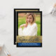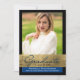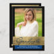 Royal dark blue and gold school colours. Beautiful elegant script with the effect of being cutout, your photo is framed with a black frame and fancy gold foil effect and sophisticated "Graduate" perfectly customised with the graduate's name, school and photo. Golden leaf printed image is sophisticated and sleek for celebrating the tremendous achievement of the female girly girl's graduate or anyone!