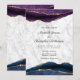 Elegant Blue Gold Geode Purple Agate Wedding Invitation.