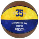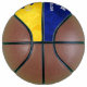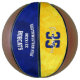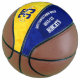 This custom commemorative basketball styled for girls features her team's blue and gold colours on two of the basketball's panels, upon which her name and jersey number plus school name, mascot name and year can be easily customised - the blue and gold panels have a girly, artsy vibe with an abstract, digitally created textured appearance - by katz_d_zynes | see more girls’ basketball gifts in my "Basketball team colours gifts for girls" collection >>> https://www.zazzle.com/collections/119901188031358626