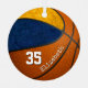 This team spirit basketball ceramic ornament styled for girls features a basketball graphic with easily customisable player name and jersey number on the front and holiday year on the back - the basketball has two coloured panels, one blue and one gold, blended with a digitally created texture for an artsy appearance - by katz_d_zynes | see more basketball ornament colour combinations by searching "basketball ornaments" in my shop  | see more girls’ basketball gifts in my "Basketball team colours gifts for girls" collection >>> https://www.zazzle.com/collections/119901188031358626