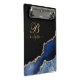 An elegant chic blue agate geode with gold glitter veins of colour on a clipboard. A stylish monogram for your home or office decor.