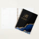 An elegant chic blue agate geode with gold glitter veins of colour on a slate black daily planner. A stylish monogram for your home or office decor. A great gift for a high school or college student heading off to school.