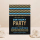Blue & Gold Glitter Chevron Birthday Party Invitation
