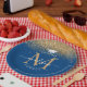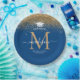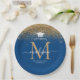 Blue Gold Glitter Monogram Grad Graduation Party Paper Plate