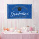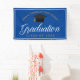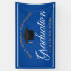 This chic custom senior graduation banner features chic white and gold typography under a high school or college name for the class of 2025. Customise with your graduating year under the elegant calligraphy for great personalised graduate party or ceremony decor in classic blue.