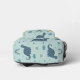 Blue and gold dinosaurs make a cute pattern on this kid's backpack. Along with the dinos are boho style rainbows and clouds. Everything is placed on a light blue background.