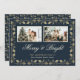 Blue Gold Holly Merry and Bright Photo Holiday Card