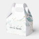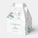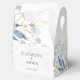 This elegant favor box features a soft white background with watercolor-style blue eucalyptus leaves and delicate gold accents – a timeless choice for romantic, nature-inspired weddings.