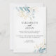 Modern watercolor, floral invitation in the colours blue gold. Perfect for your wedding and easy to edit. Fill in your data, you can choose the font, position, etc. individually by "further personalise".