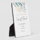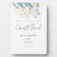 Blue Gold (Imitate) White Wedding Guestbook elegant, leafy, blue, gold calligraphy Plaque Sign. This exquisite piece is designed to elevate the ambiance of your special day with its timeless elegance and customisable features. Shop now and add a touch of refinement to your special day.