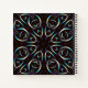 This is a luminous openwork blue, faux gold and purple boho mandala pattern on a black background.