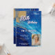 Blue Gold Marble Glitter Photo 80th Birthday Invitation