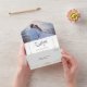 This is an elegant and modern all season wedding invitation that lets your own couple's photograph take centre stage. The inside flap showcases your photo, while at the centre, your important wedding information in blue and gold text combines with gold line embellishment at the right and left. The tear away RSVP card and reception menu choice options are at the bottom, also in blue and gold. If you don't need a text field, just blank it out. We are always happy to help, so feel free to message us if you need assistance. If you're having a buffet reception, we can work with you to re-design the RSVP portion, so don't hesitate to ask!