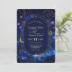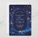 Celebrate your love beneath a luminous midnight blue sky with this Blue gold moon mystic celestial astronomy wedding invitation. This enchanting design features a radiant golden moon surrounded by delicate constellation details and a soft starry glow that captures the wonder of space. Set against a magical galaxy watercolor background with dreamy cosmic textures, the rich blue and gold palette creates a mystical and romantic atmosphere. Perfect for couples who adore modern space themed astronomy style, this elegant invitation blends celestial beauty with refined sophistication, setting the tone for a wedding celebration written in the stars.