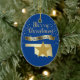 Send them something pretty from the great state of Oklahoma! On the front of this ornament is a shiny gold silhouette image of the state, with a darker gold star imposed over it. Above the state and star image is the glittery message MERRY CHRISTMAS in script, and a banner with the text in blue OKLAHOMA. Around it all are gold snowflakes. The images and text are placed on a deep blue background. The back of the ornament has text fields in light gold for you to customise, and a second gold star image. You may change the background colour, if you'd like, by choosing CUSTOMIZE.