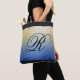 Blue Gold Ombre Glitter Design with Monogram Tote Bag