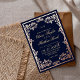 Modern stylish blue wedding invitation. White with foil gold on with a gold ink pour effect and modern calligraphy. Classy and elegant, luxury and modern invitation.