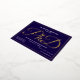 A PhD graduation party invitation postcard with gold foil, white text, and a blue background. Simply add your information, add this invitation to your cart, and celebrate this major accomplishment.