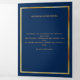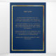 An elegant tri-fold program. A navy blue background, a faux gold frame and space for your photo. Personalise and add name, dates and your text.